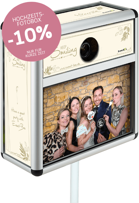 Unsere Fotobox speziell für Geburtstags- und Hochzeitsfeiern begeistert deine Gäste garantiert. Viele Extras wie passende Fotobox-Hintergründe, lustige Aufgaben zum Kennenlernen und witzige Requisiten bringen alle Altersgruppen mit viel Spaß zusammen. Und das dank dem einfachen Aufbau, unserer Erreichbarkeit und der Liefergarantie ohne großen Aufwand und Stress. Unsere Fotoboxen für Hochzeit und Geburtstag bietet dir zudem das beste Preis-Leistungs-Verhältnis. Einfach bestellen, feiern und einmalige Erinnerungen behalten.
